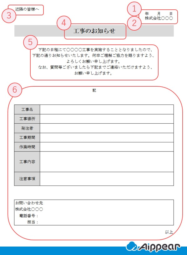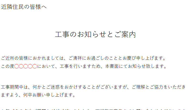 近隣挨拶文に使える工事案内文&工事のお知らせの無料テンプレート📑無料ダウンロード!テンプレルン📑無料ダウンロード!テンプレルン。