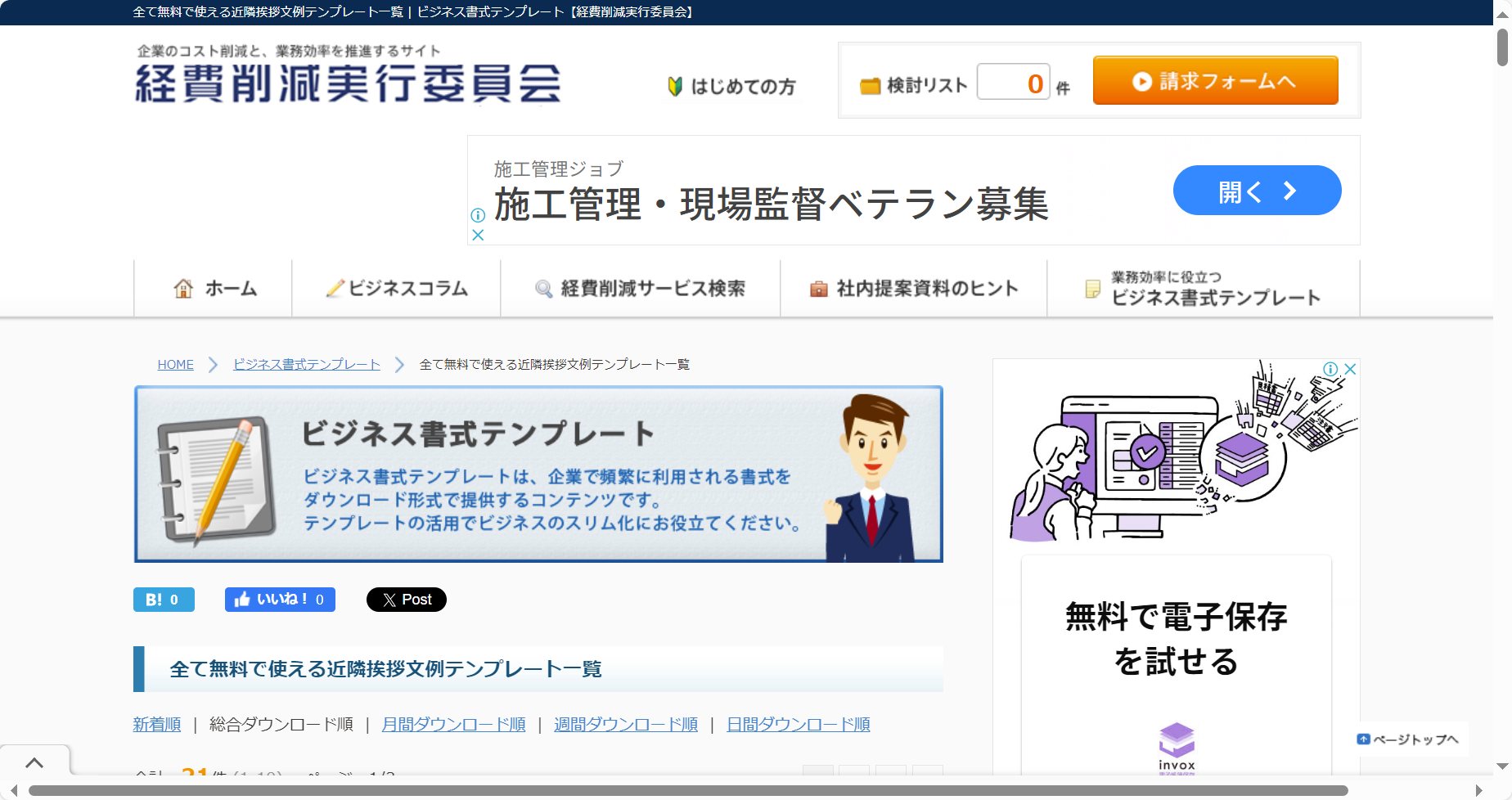 建築業界 リフォーム・工務店向け の 無料で使える! 工事挨拶エクセルテンプレート集 業務管理システムアイピア。