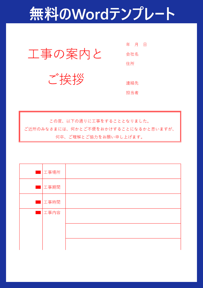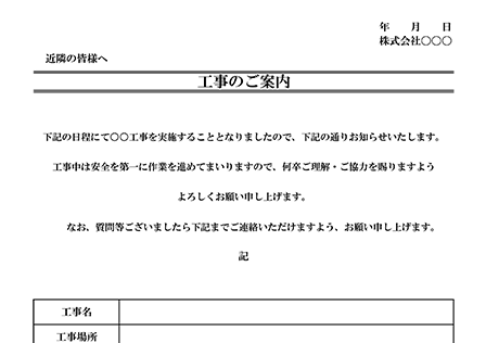 工事案内文簡単に無料テンプレートをダウンロードテンプレートボックス。