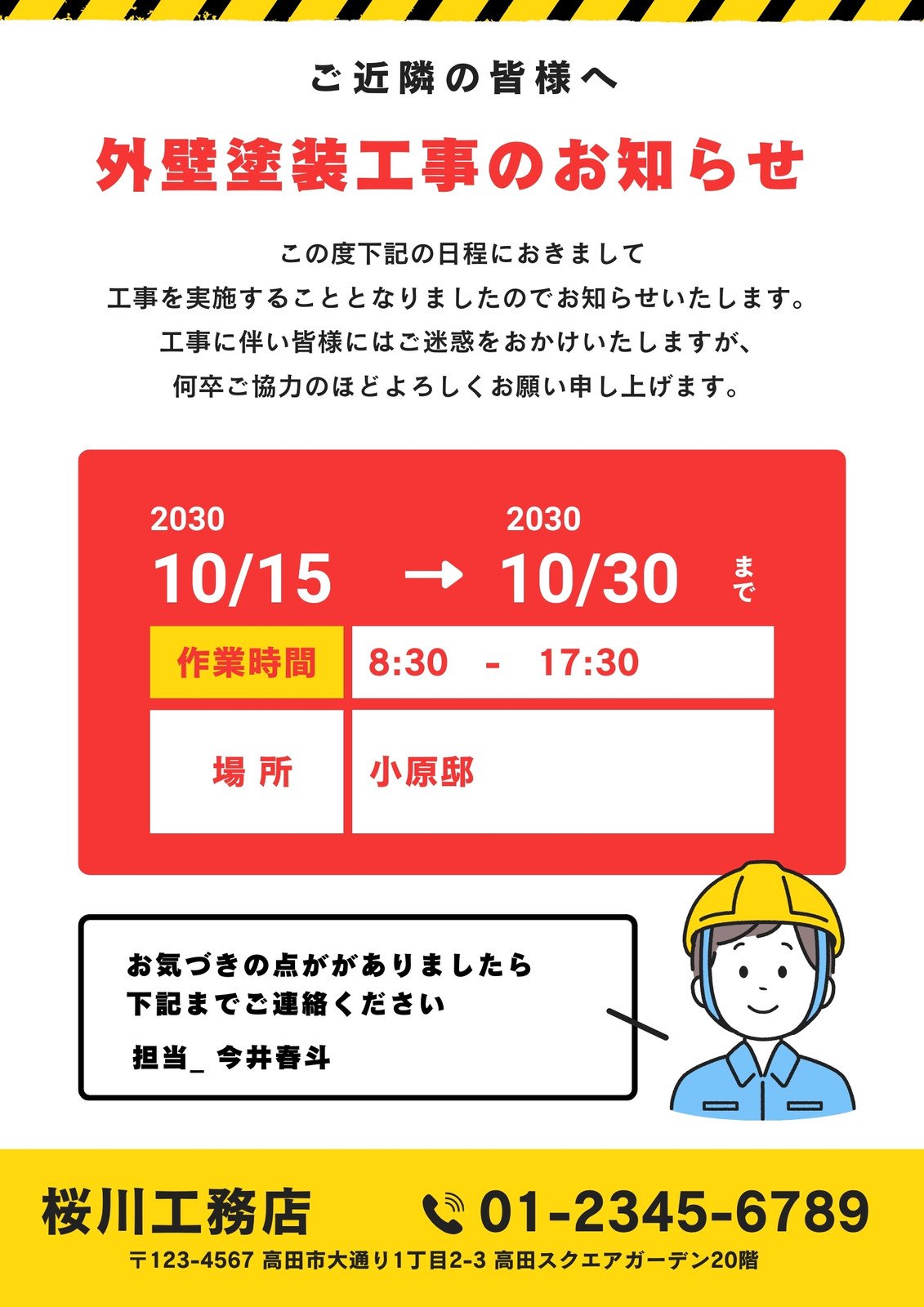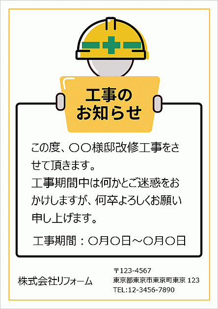工事着工のお知らせ:登録等不要で無料ダウンロード - テンプレート祭り。