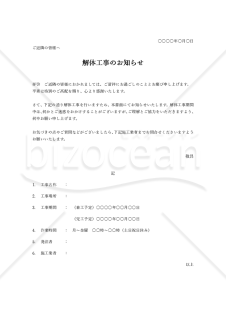 解体工事のお知らせ 表形式 ・Excelbizocean ビズオーシャン。