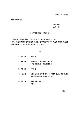 工事案内文自治会とマンション向けのテンプレートを無料ダウンロード。