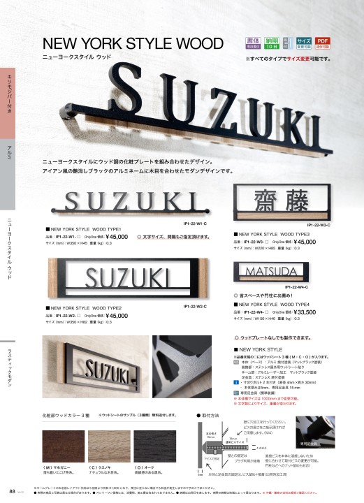 オンリーワン ニューヨークスタイル NEW YORK STYLE ネームプレート庭屋-A。