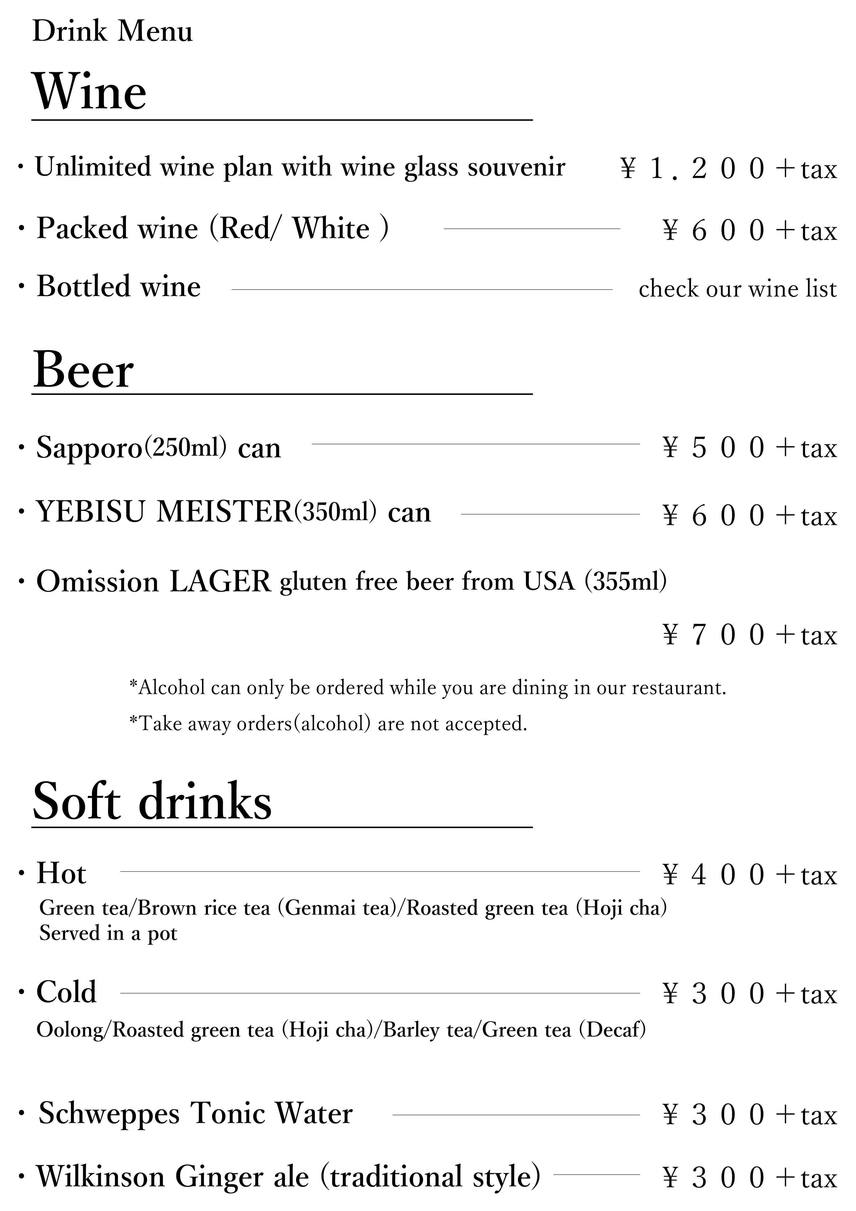 A4サイズ英語メニュー表作成ゑびす工房酔神くらぶ。