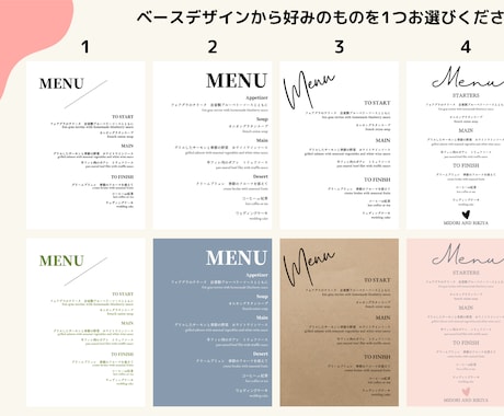 結婚式メニュー表作ります 英語表記OK!海外風なメニュー表作成します♡ココナラ。