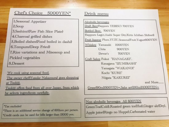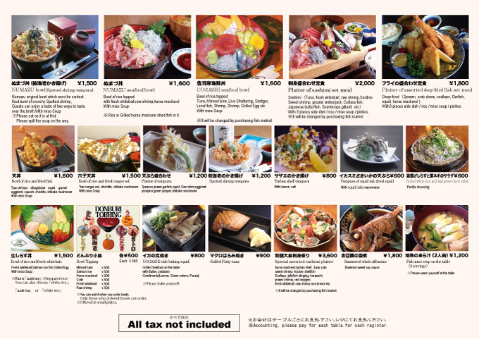 さかなや千本一 お品書き 英語版沼津港さかなや千本一&かもめ丸。