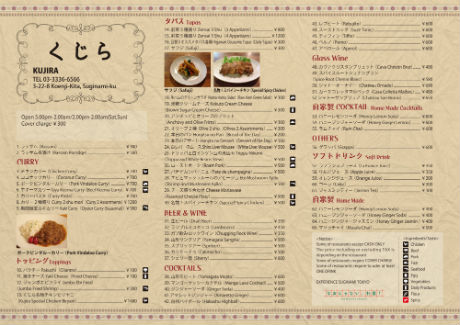 レストランメニュー 日本語版・英語版Restaurant Menus - 札幌デザイン制作会社 A4JP。
