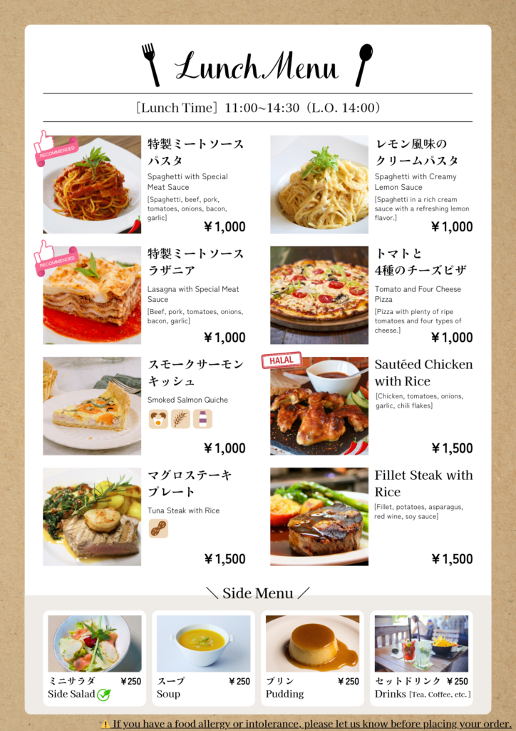 カフェやレストランの外国人向け英語メニューデザインのポイントと便利なテンプレート紹介。