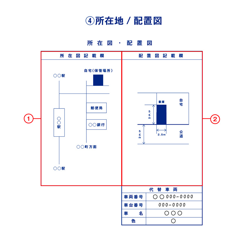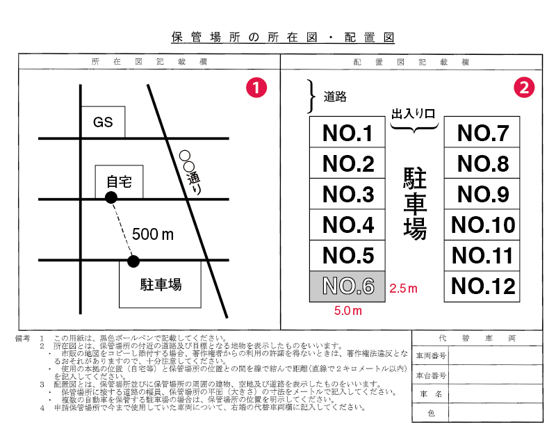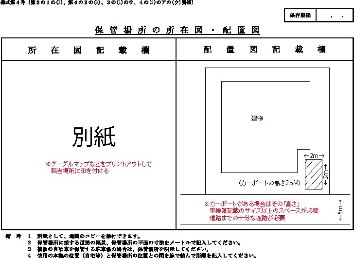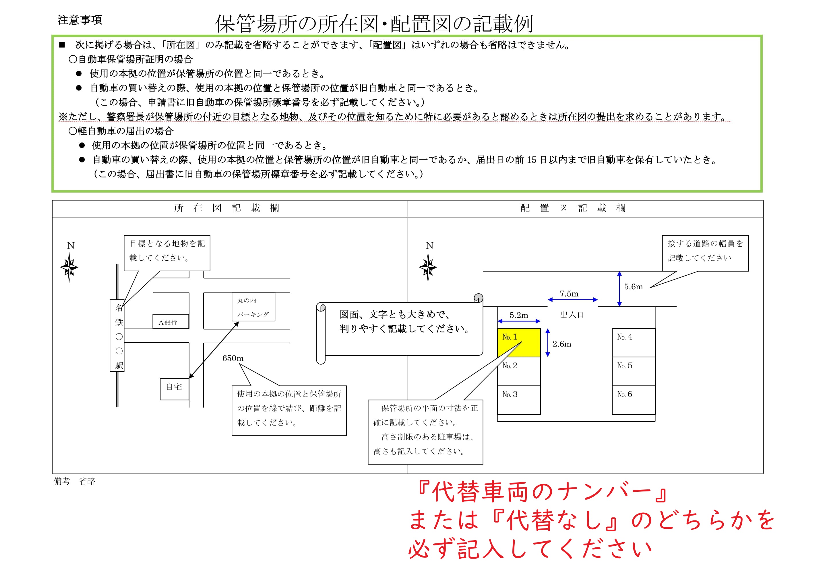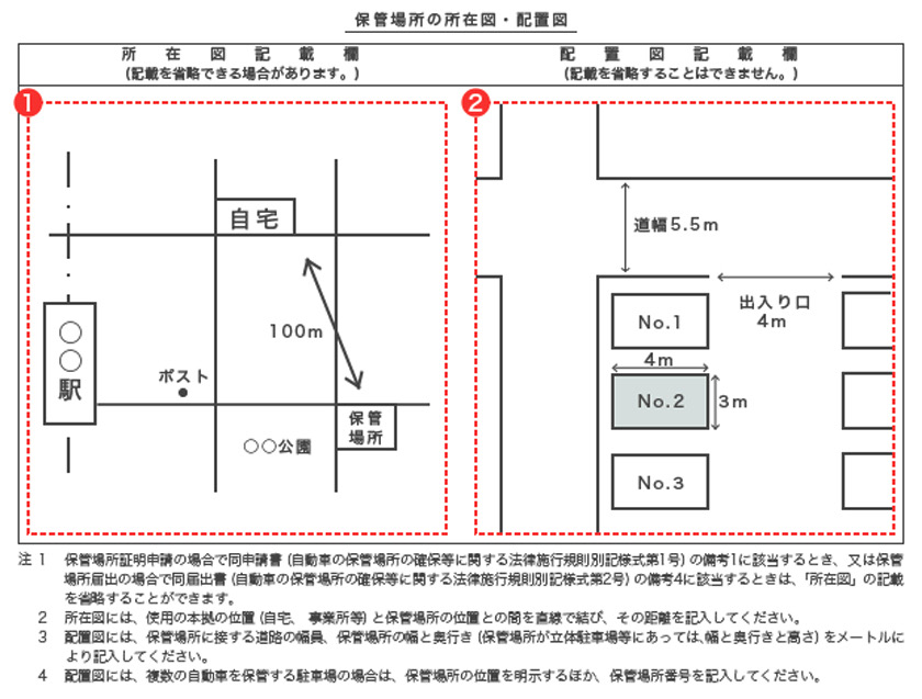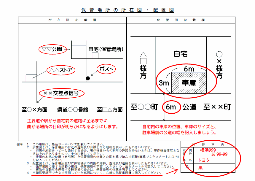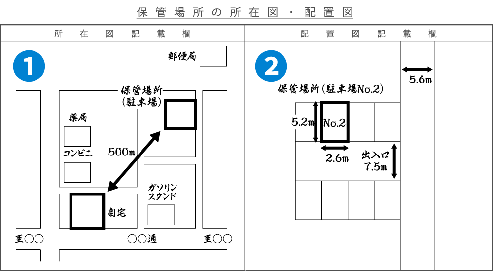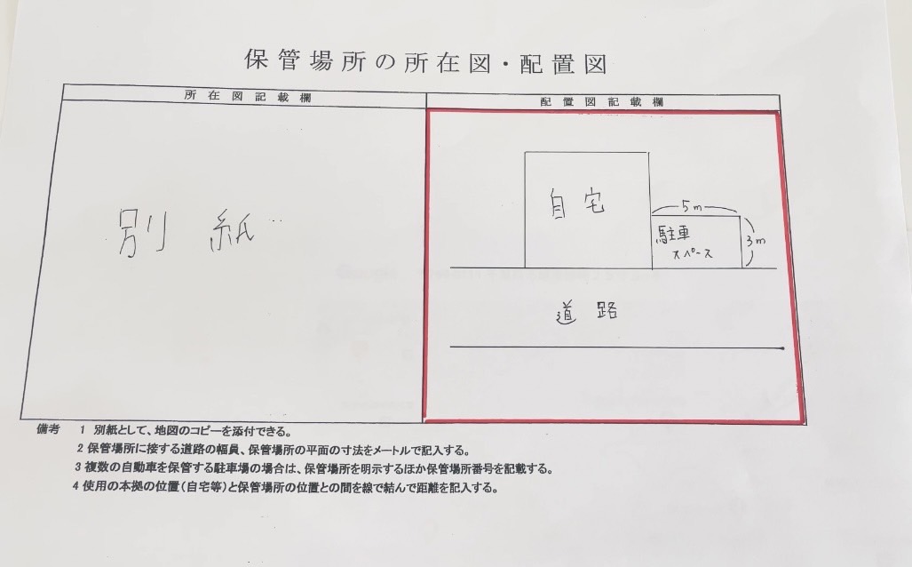 保管場所の所在図・配置図の書き方 車庫証明の書き方。
