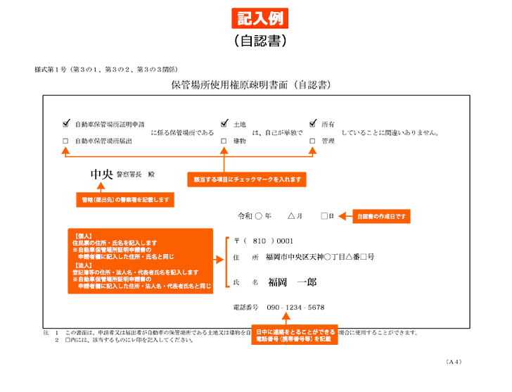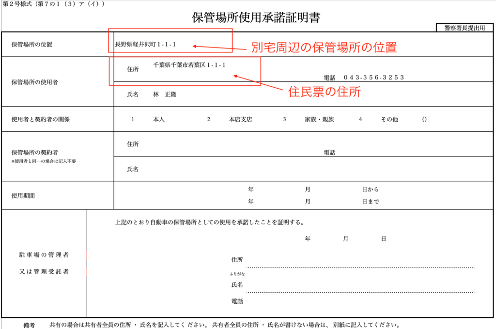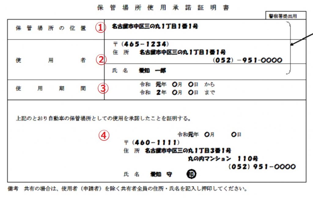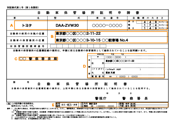 車庫証明書類記入例 - JU東京 東京都中古自動車販売商工組合・東京都中古自動車販売協会 オフィシャルウェブサイト。