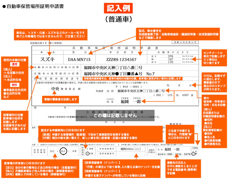 書き方ガイド・はじめての車庫証明車庫証明web印刷。