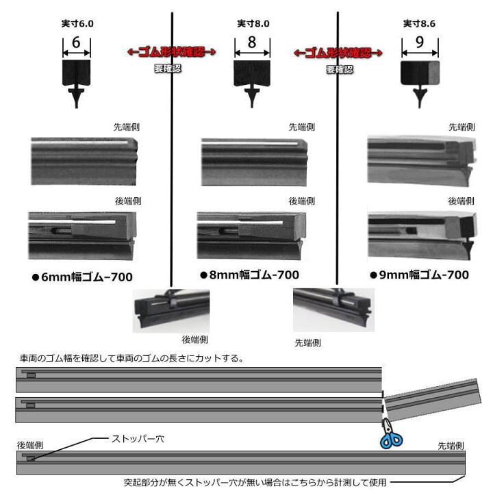 楽天市場 車両にあわせてカットして使えるワイパー替えゴム フリーカットサイズ6mm幅700 8mm幅700 9mm幅700まで対応可能 送料無料数量無制限 逆からのカットでフラットタイプにも対応可能 リアワイパー形状にも対応 : sk auto trading。