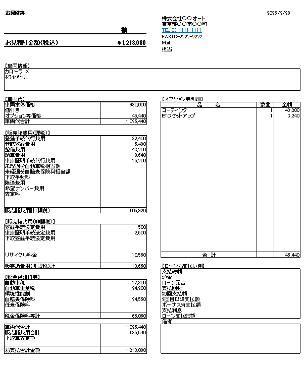 シンプルで書き方が簡単 手書き対応 凡庸性が高い査定書「エクセル・PDF」フォーマットとなります。簡単な査定や商品数が多。