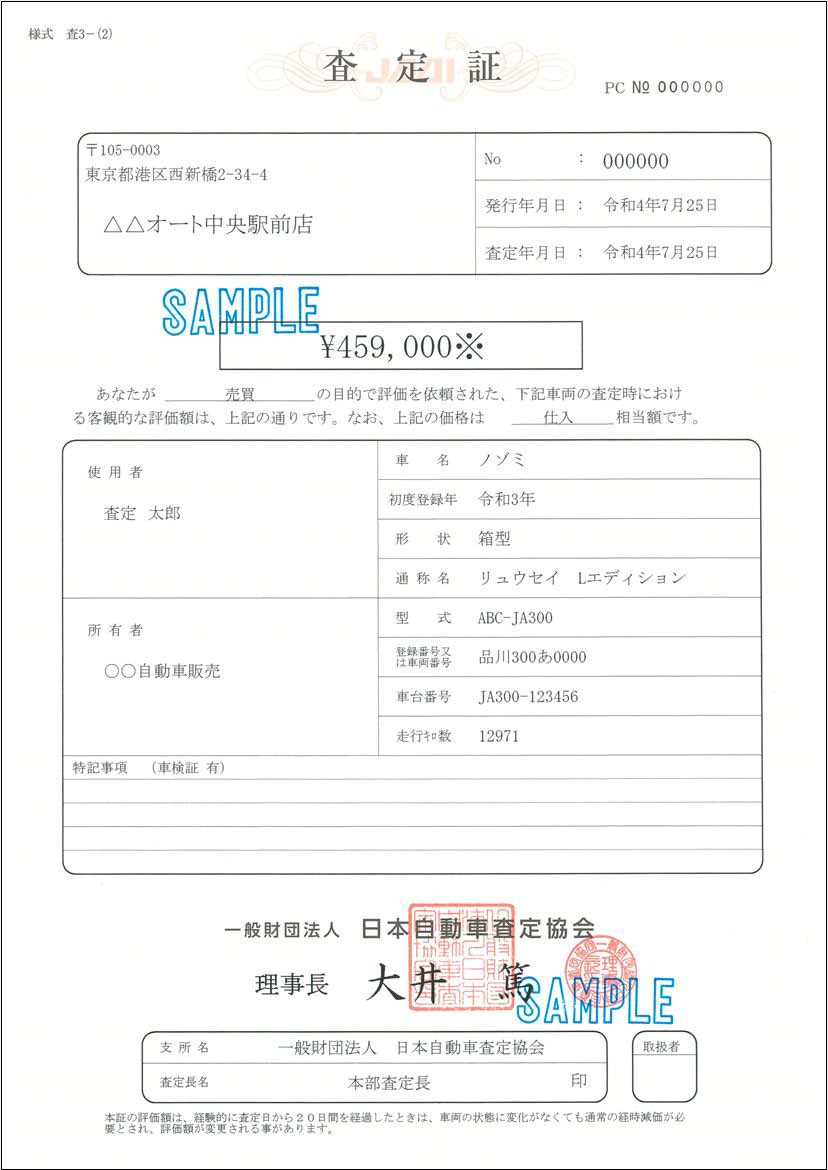 認定書サンプル自動車検査は一般社団法人自動車情報開示推進機構。