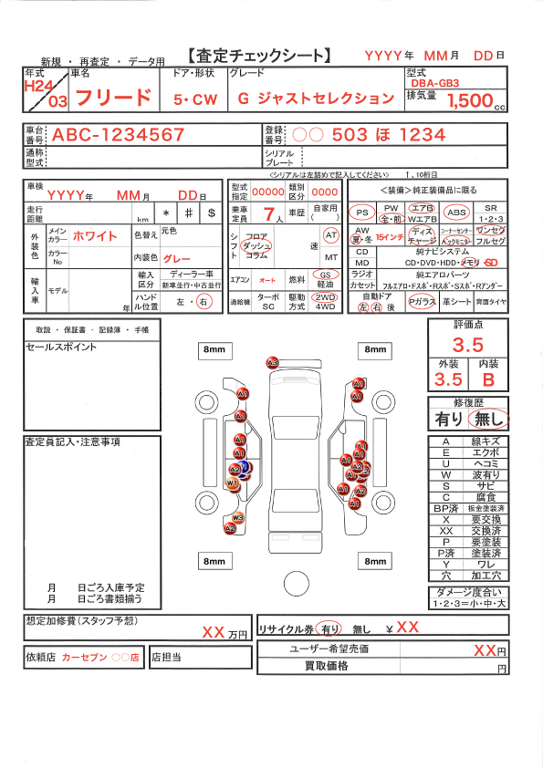 はじめて車を売る人必見!車査定表のテンプレートや見方について車買取・査定の相場、口コミや評判まとめサイト車買取マイスタ。
