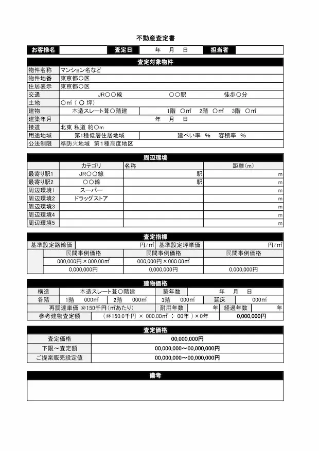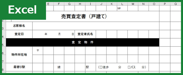 売買査定書 Excel 無料テンプレート「00001」は戸建ての内覧時にも使える雛形。