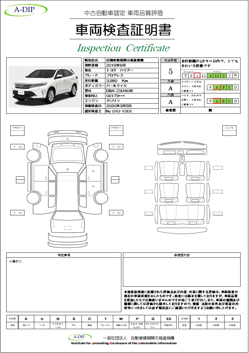 検査証明書サンプル自動車検査は一般社団法人自動車情報開示推進機構。