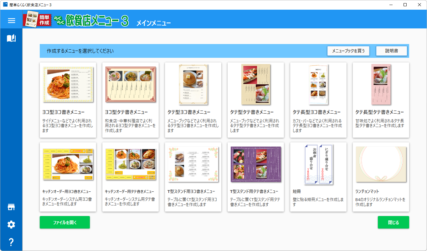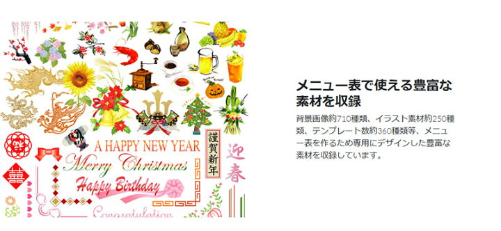 簡単作成らくらく飲食店メニュー3 - たった5分で素敵なメニュー表が完成!飲食店様オリジナルのメニュー表が作成できるパソコンソフト。