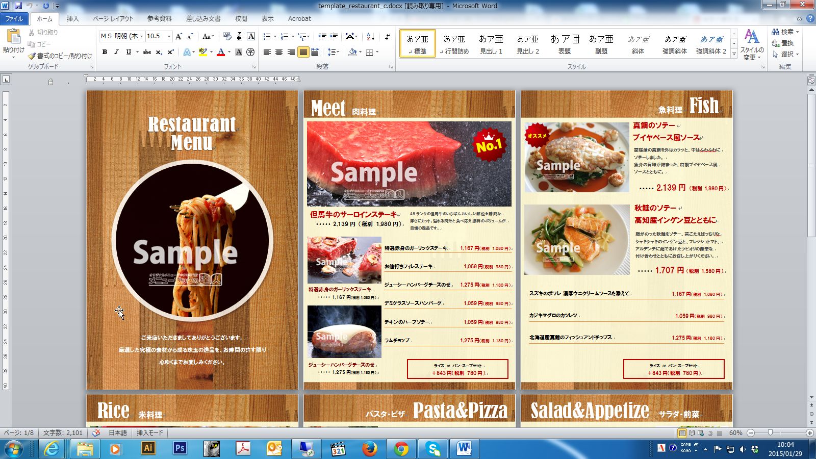 メニュー表を無料のテンプレートでパパッと仕上げてみる - メニューブックの達人ブログ。