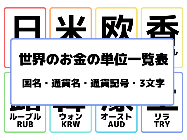 通貨単位 世界のお金の単位一覧表 国名・通貨名・通貨記号・3文字。