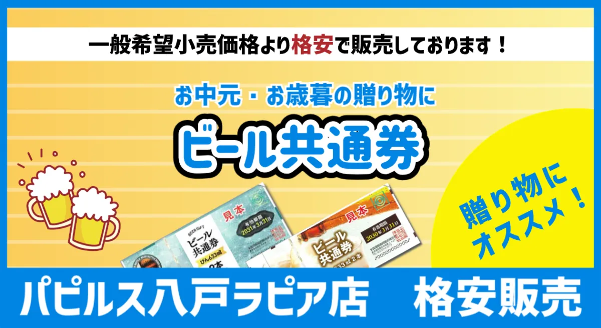 格安販売 ビール券贈るなら‼パピルスっ♪ 日本海チケット・パピルス~あなたの街の金券ショップ~。