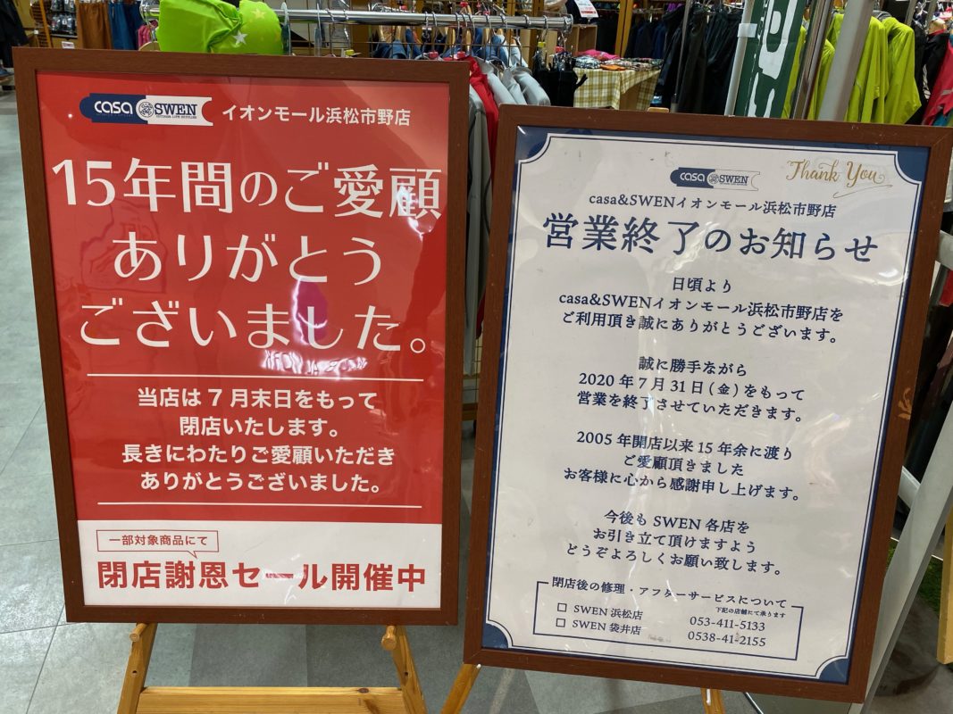イオン市野の「casa&SWEN」が7月31日閉店。現在閉店セール開催中 - ココハマ。
