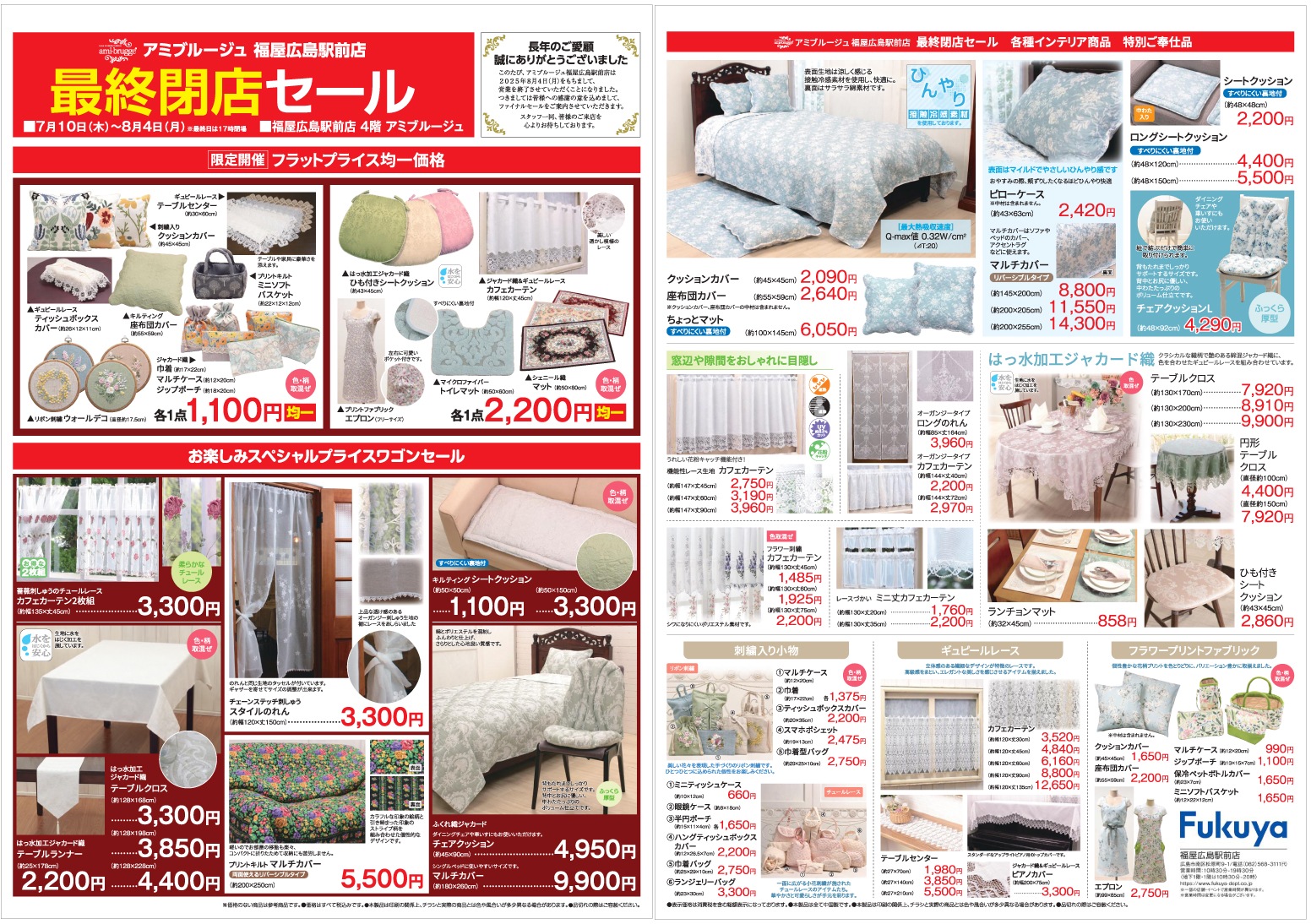 広島ショップ 最終閉店セール開催中!お知らせアミブルージュインテリアレース・うさぎ雑貨・刺繍とキルトのお店。