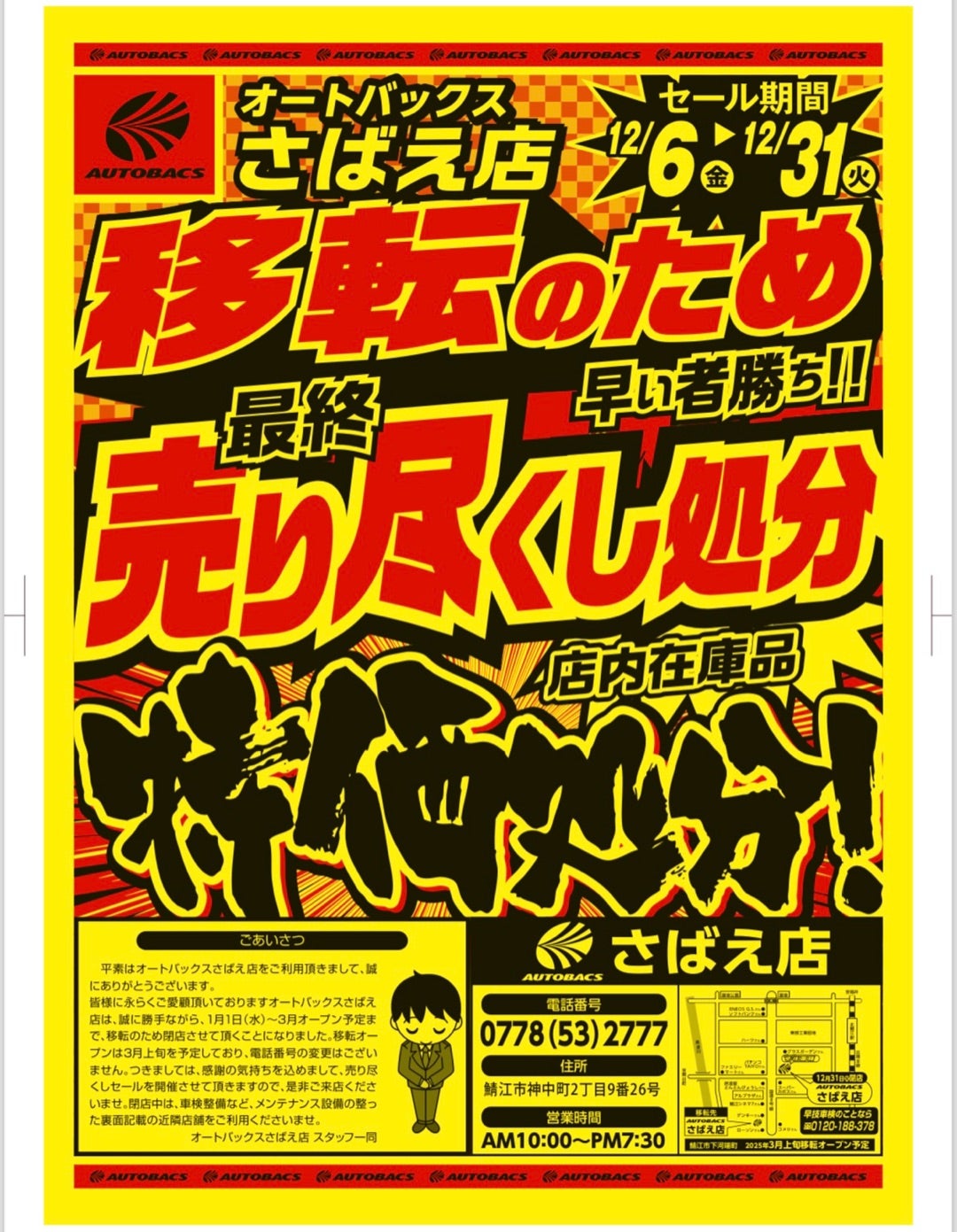 さばえ店 閉店セール開催中です!!オートバックスカーズ☆スタッフブログ。