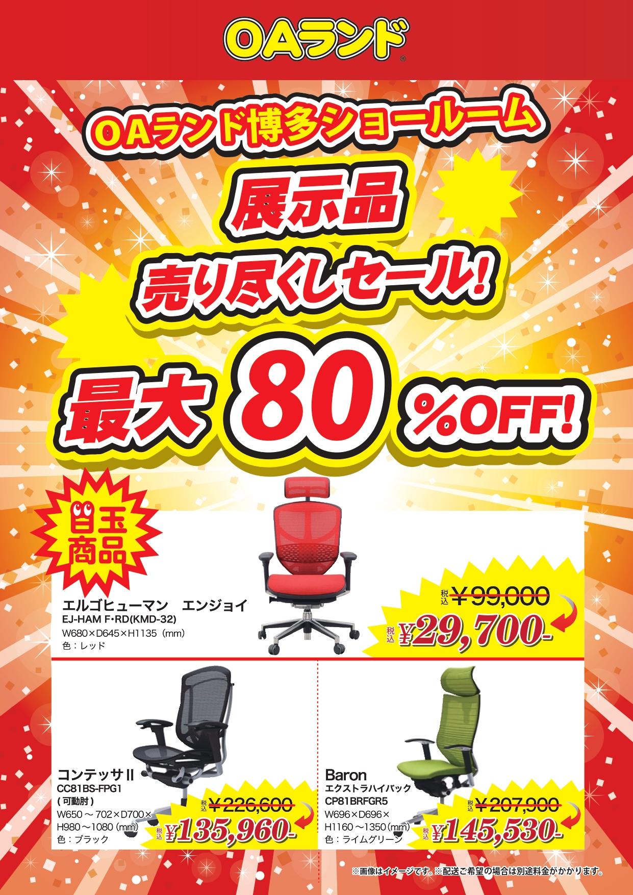福岡ショールーム閉店売り尽くしセール開催中OAランド起業家支援室 福岡ライブオフィス。