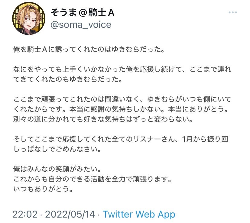 人気歌い手「Knight A - 騎士A - 」そうま、女性問題と情報漏洩で再び活動休止 メンバーは「本当に絶望した」 - YouTubeニュースユーチュラ。