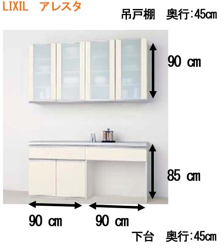 超特価 LIXIL アレスタ キッチン カップボード 釣り戸棚カウンター引き出し。