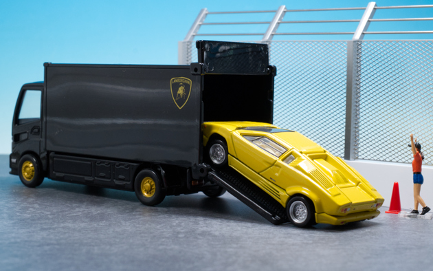 漆黒が超カッコいい! トミカトランスポーター ランボルギーニ 2セットTomica Transporter LamborghiniCountach 25th。