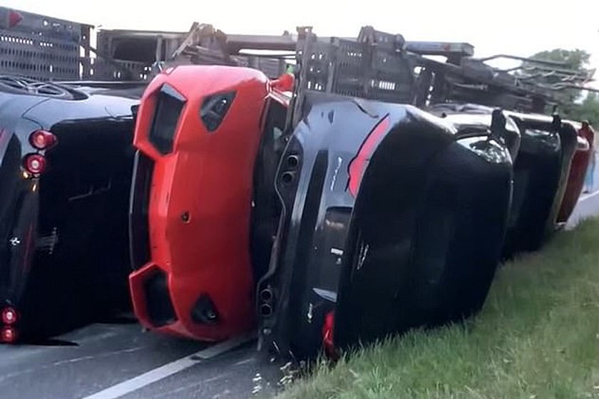 ランボルギーニ・アヴェンタドールや日産GT-R R35、フェラーリ、アストンマーティンなどを輸送していたトラックが横転→被害総額は「1.4億円以上」かCreative Trend。