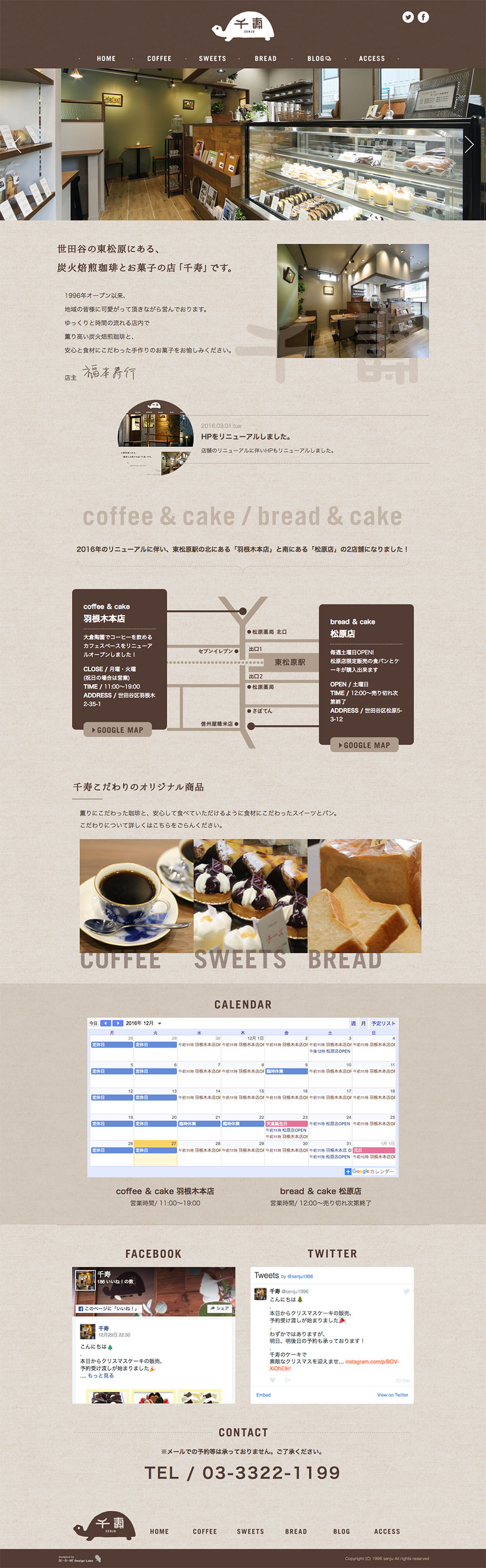 カフェのホームページデザイン_東京都世田谷区東松原 カフェ・ド・せんじゅ羽根木本店空間ブランディング・店舗デザイン実績。