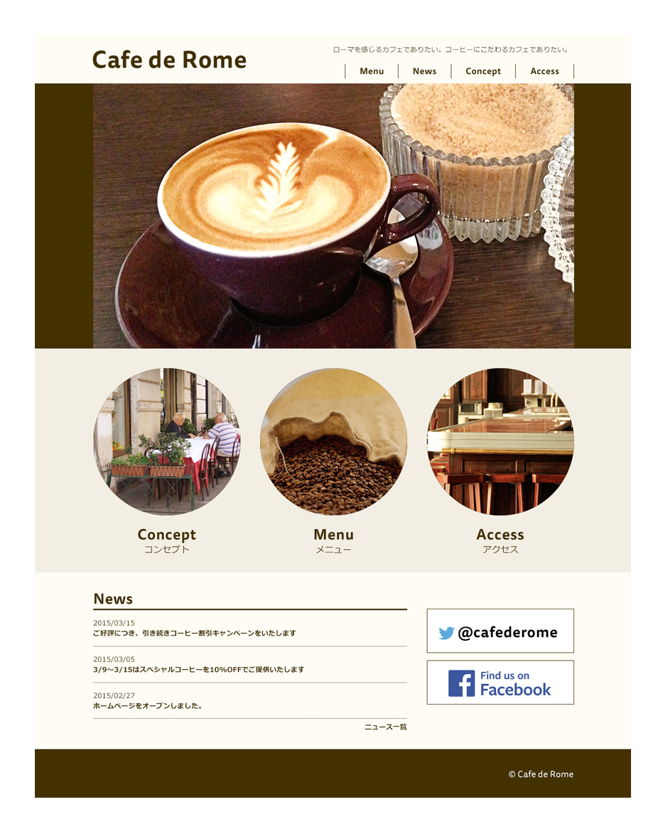 カフェのホームページデザイン例CMSでホームページ制作するCMS-HOMEPAGE.net。