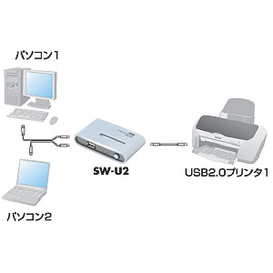 サンワサプライ 2台のPCでプリンタなどのUSB周辺機器を共有できる。USB2.0切替器 2:1SW-U2 SW-U2激安通販のイーサプライ。