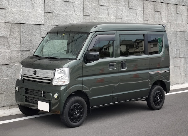 アッシュカーキ マッドブラック全塗装のエブリィワゴン、販売開始します。 よいご縁がありますように。エブリィワゴンエブリィエブリィバンエブリィリフトアップオールペンアウトドアキャンプギアカスタムひとり旅デイトナホイールkk03ナンカン。