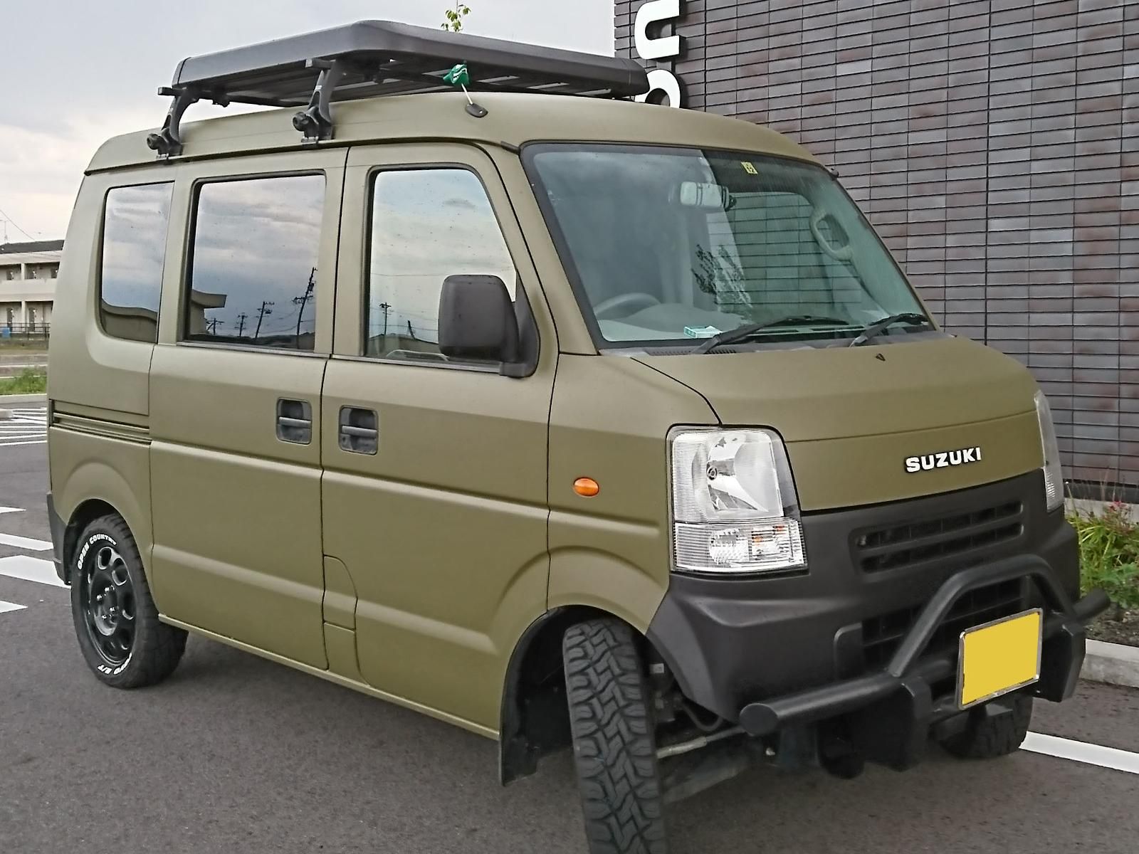 宮城県仙台市!スズキ エブリイワゴン da62w アゲバン ミリタリー仕様 カスタム カーキグリーン オリーブドラブ ルーフラック付き ルー万事屋 レイヴ卸町のエブリイの中古車ジモティ。