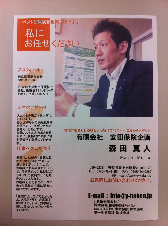 営業担当者 紹介チラシ「保険」を伝える 奈良県 ライフコート。