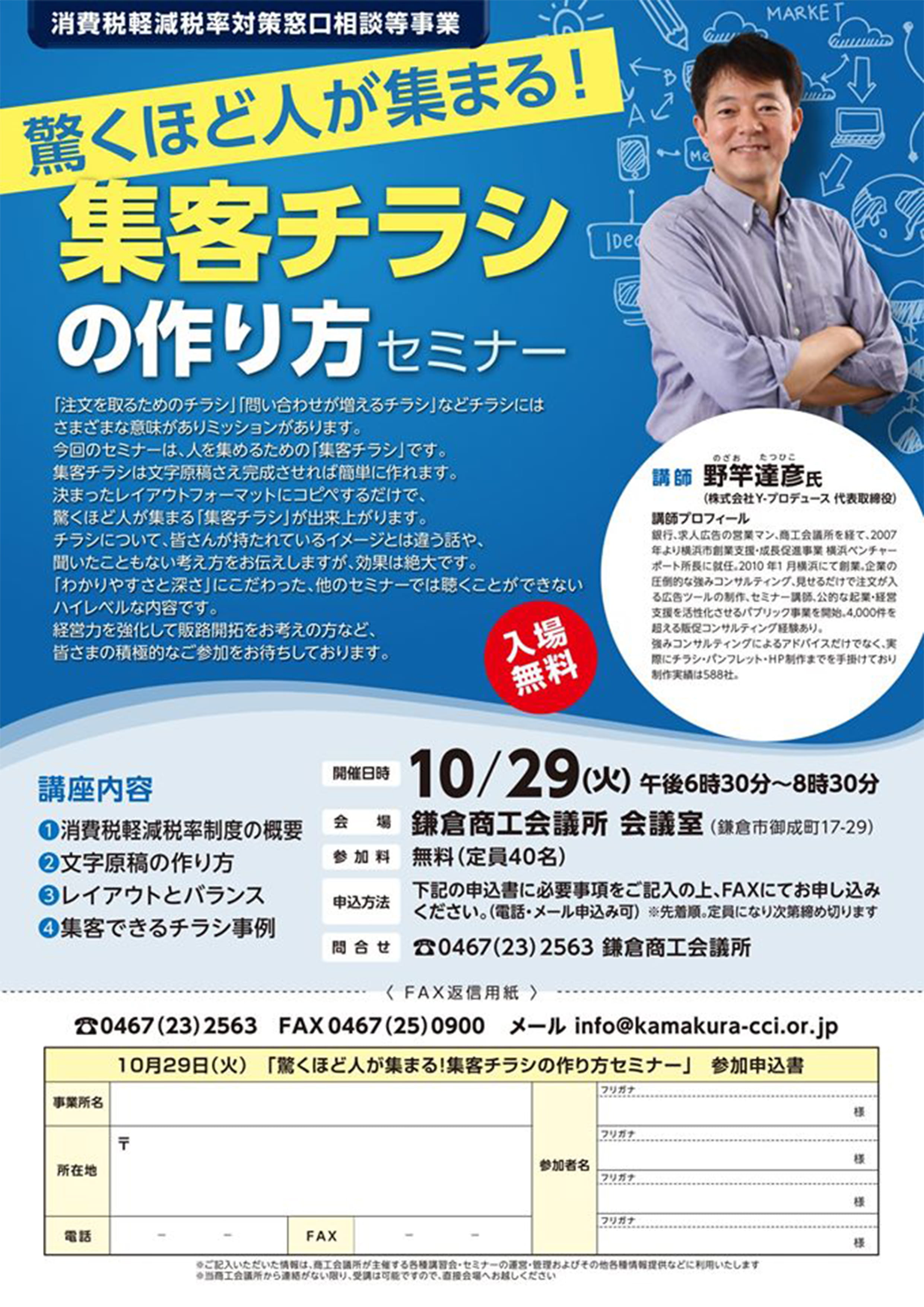 セミナー講師依頼 見せるだけで注文が入る!チラシ・パンフレットの作り方株式会社Y-プロデュース。
