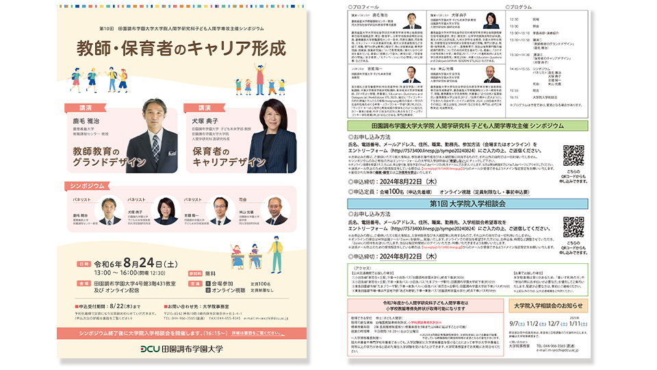 チラシ・リーフレット 大学院のイベント開催告知チラシデザイン_田園調布学園大学様東京・京都のデザイン会社JPC。