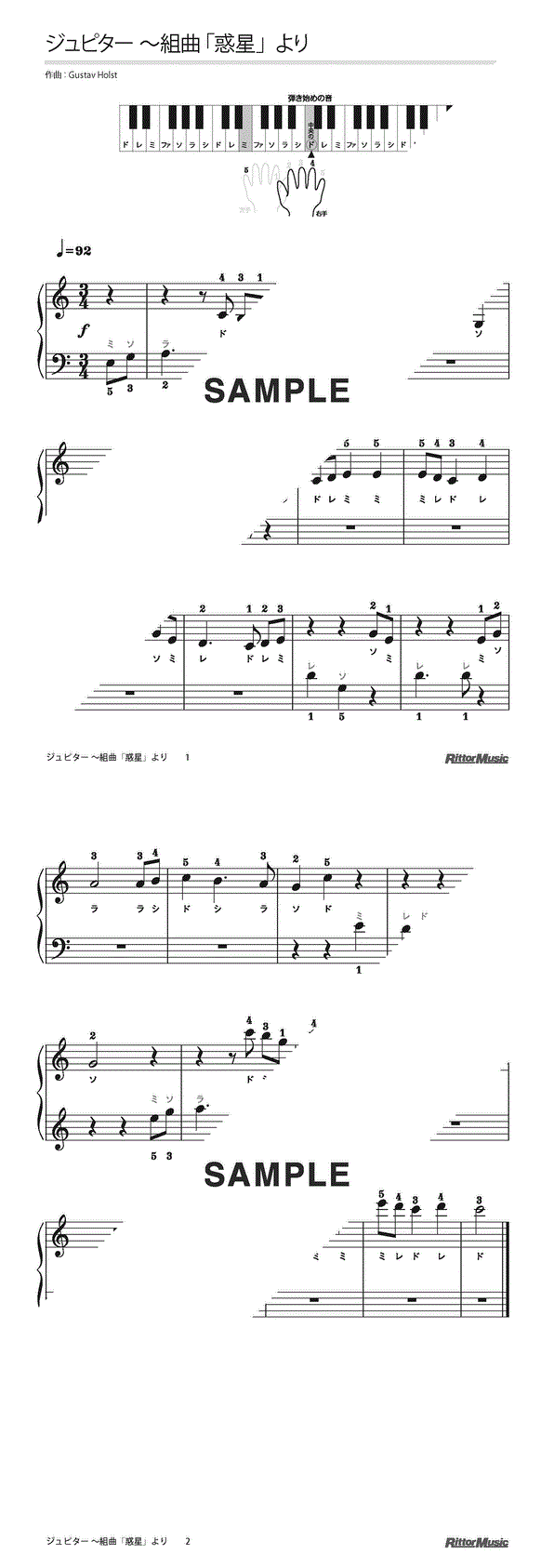 楽譜 ジュピター〜組曲「惑星」より ドレミふりがな&指番号つきホルスト ピアノ・ソロ譜 超初級 提供:リットーミュージック楽譜@ELISE。