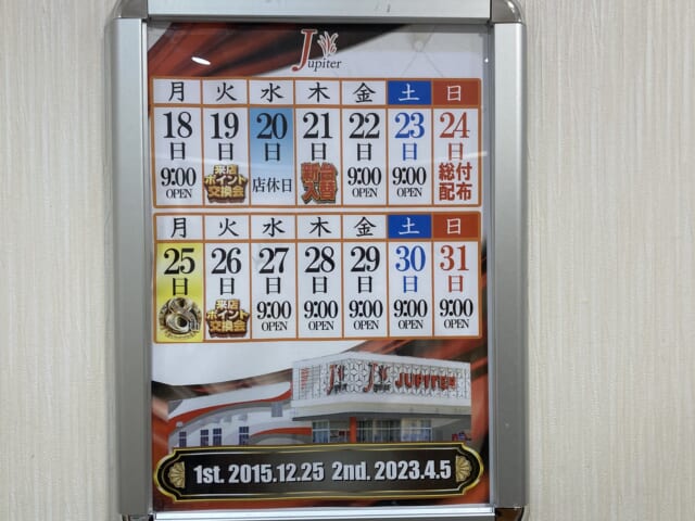ジュピター千代田店イベント一覧・出玉データまとめ。
