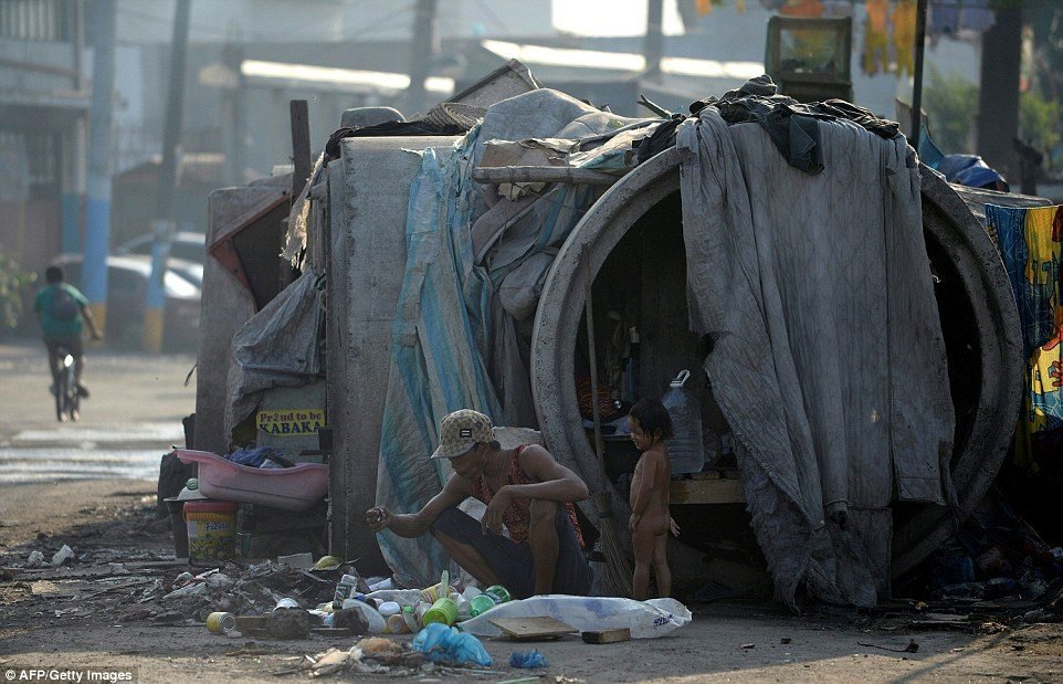 フィリピン貧困層、マニラのスラム街で土管に暮らす人たちの写真マダム・リリ。