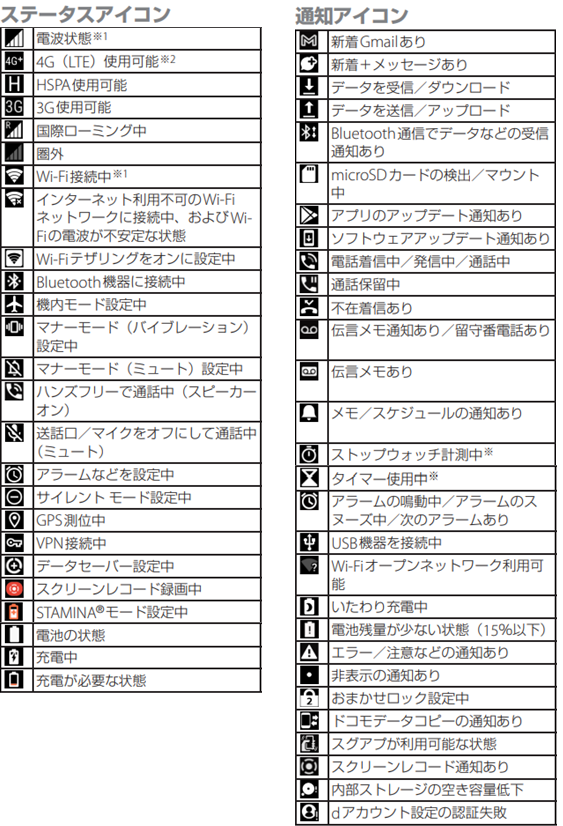 Android スマホに表示されるステータスアイコンの意味を解説。