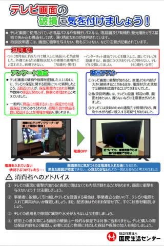 テレビ画面の破損に気を付けましょう!-破損や水ぬれにより高額な修理費用がかかることも- 発表情報 _国民生活センタ。