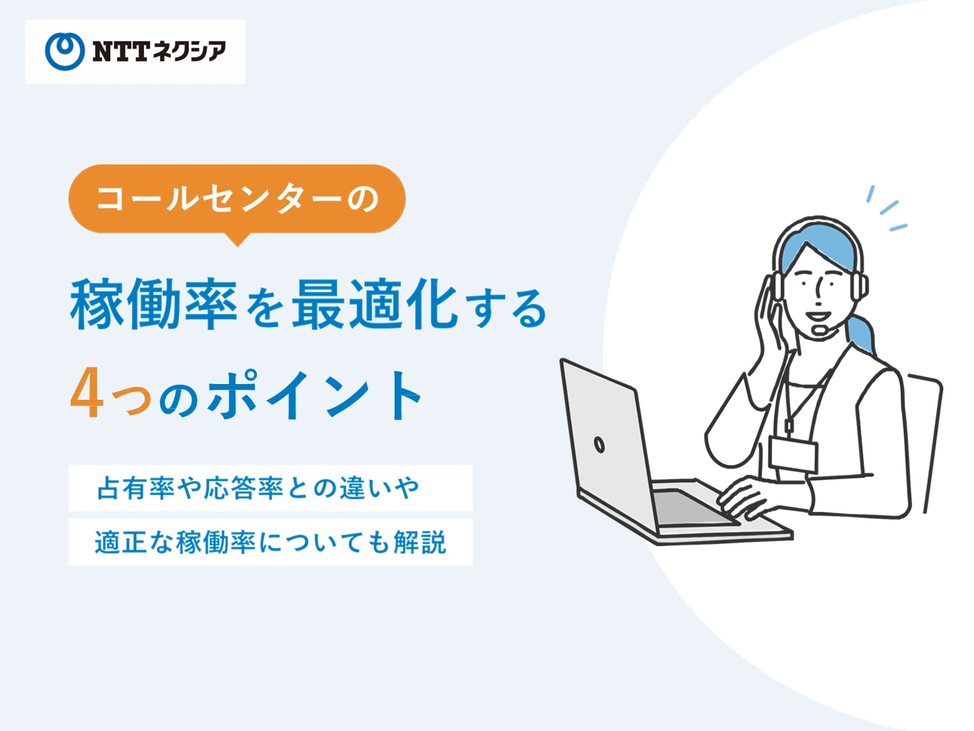 資料ダウンロード:コールセンターの稼働率を最適化する4つのポイント 占有率や応答率との違いや適正な稼働率 についても解説顧客接点 窓口 の強化NTTネクシア。