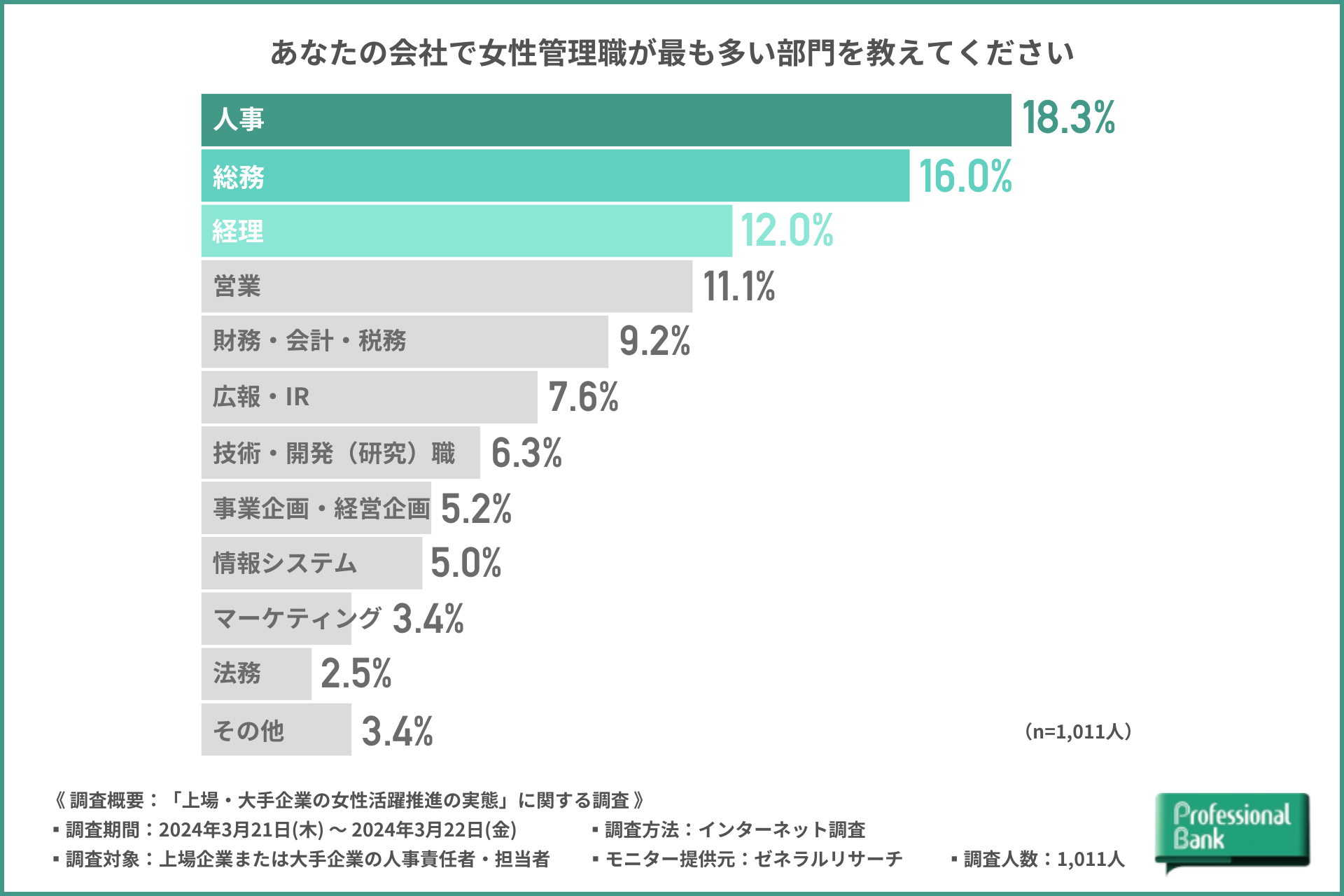 上場・大手企業の女性管理職比率30%以上はわずか4社に1社 プロフェッショナルバンク調査Biz Zine ビズジン。