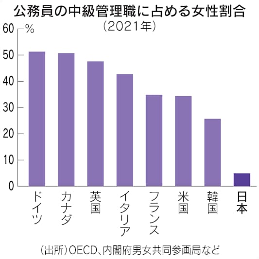 国家公務員、女性採用4割 管理職はG7最低の5%未満 - 日本経済新聞。