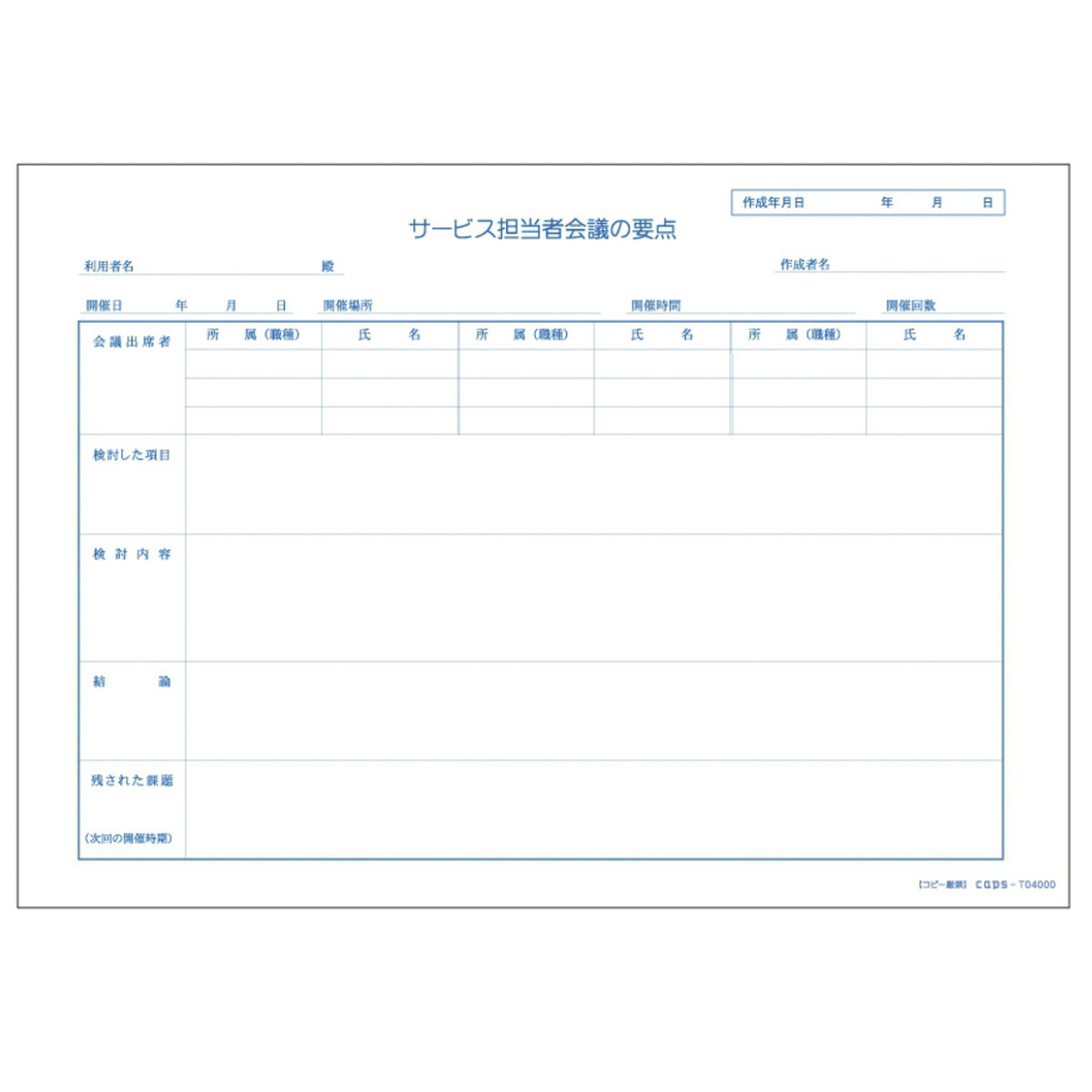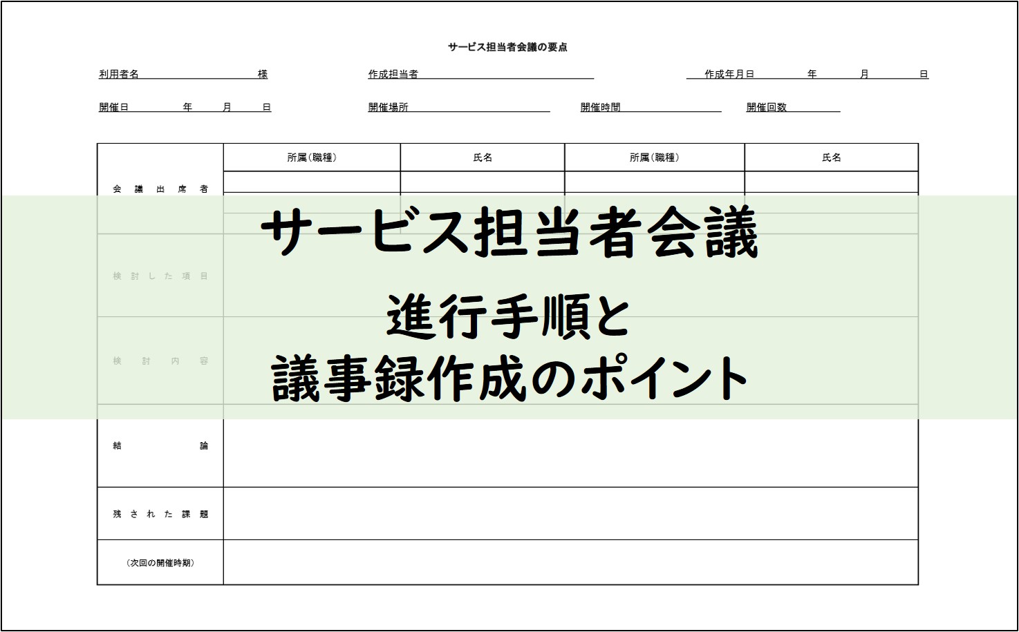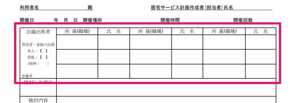 サービス担当者会議の要点」ひな形テンプレート無料ダウンロードヘルパー会議室。